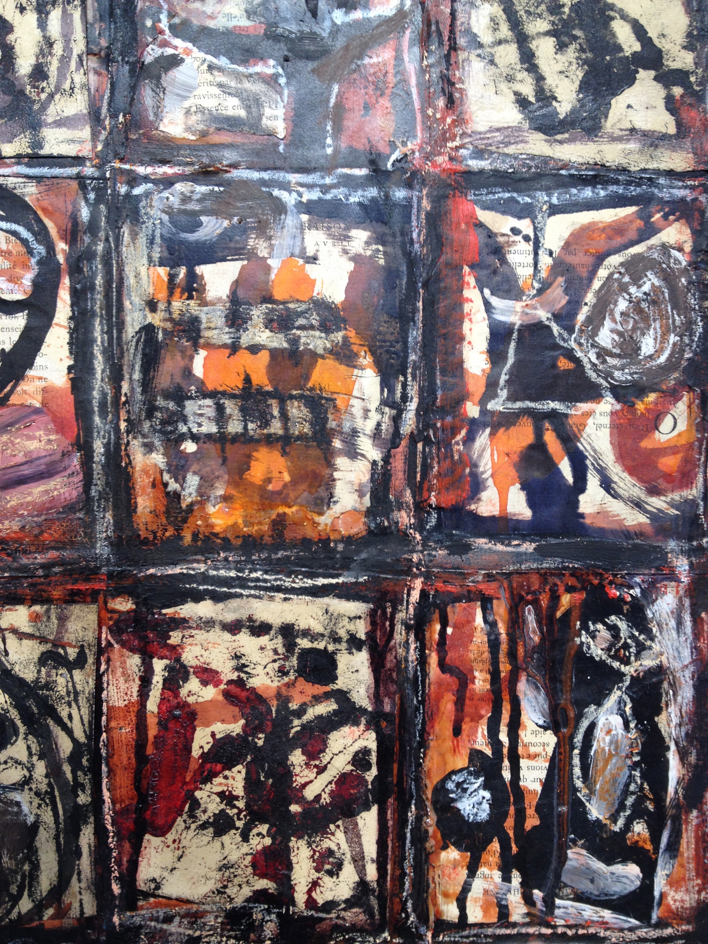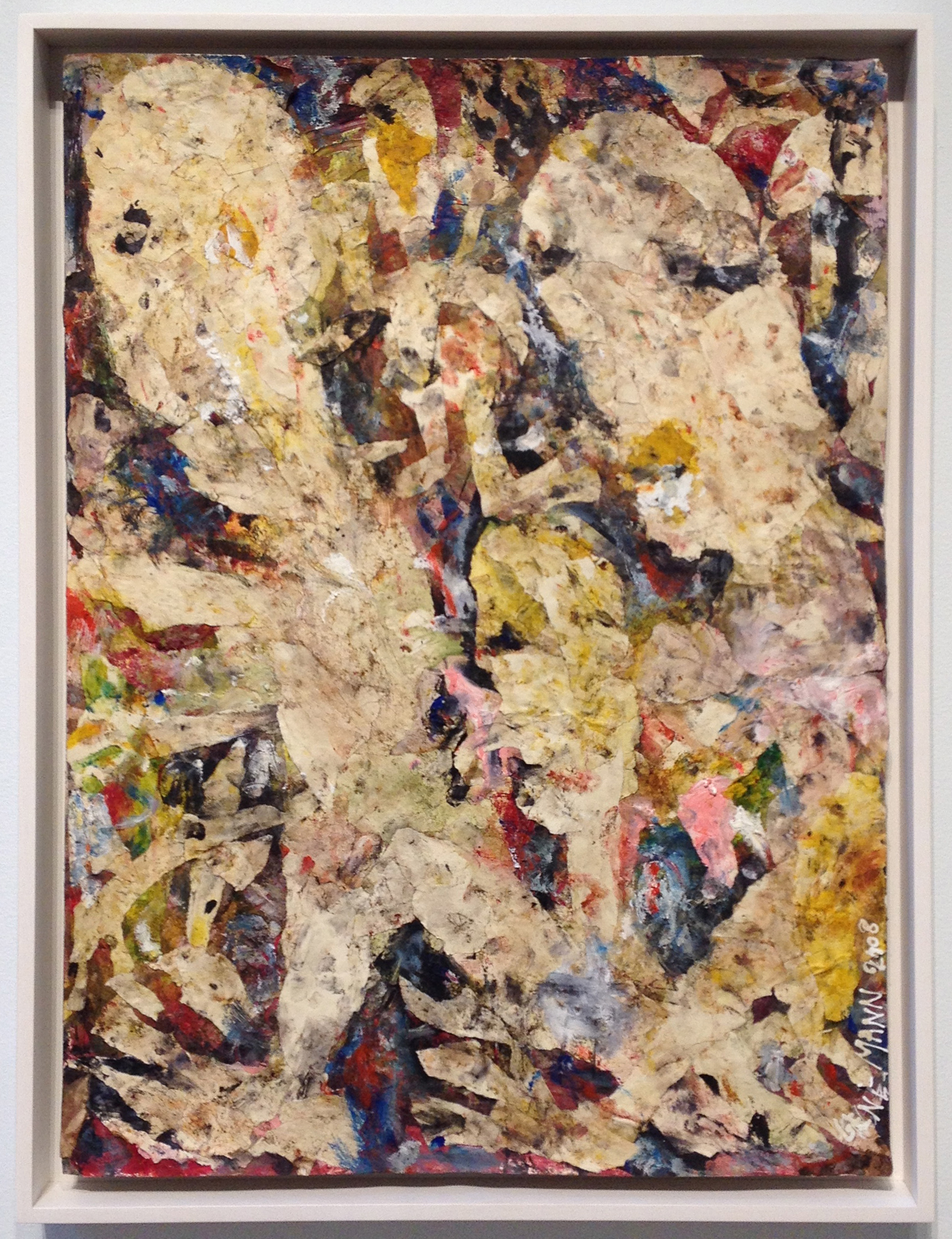 Gene Mann lives in Switzerland near Geneva but was born in France. The show at Andrew Edlin Gallery is her first New York solo exhibition. The works at Edlin are sensually textural; a blend of drawing and collage. The pieces are most definitely figurative collage works, but they have an expressive, painterly feel to them and a movement that is both chaotically childlike and simultaneously haunting. There’s something about the way the materials are manipulated and how the elements bleed into and over one another; like thoughts and stolen moments. Dreams and memory. The collection of elements are torn and pieced and drawn upon and torn again before coming together to form their rich dreamlike narrative quality, and these stories linger.