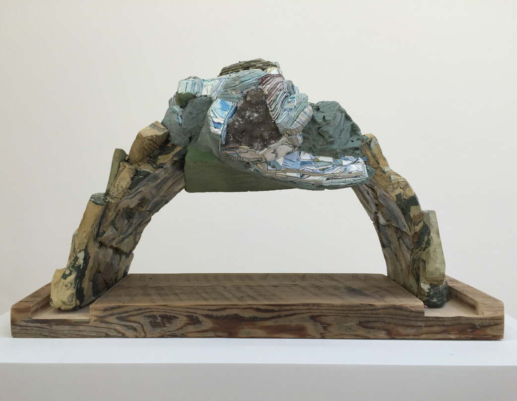 Chandigarh, 2015, ceramic, paper, hydrostone, pigment, oil stick, herkimer diamond, wood, 23″ x 18″ x 10″