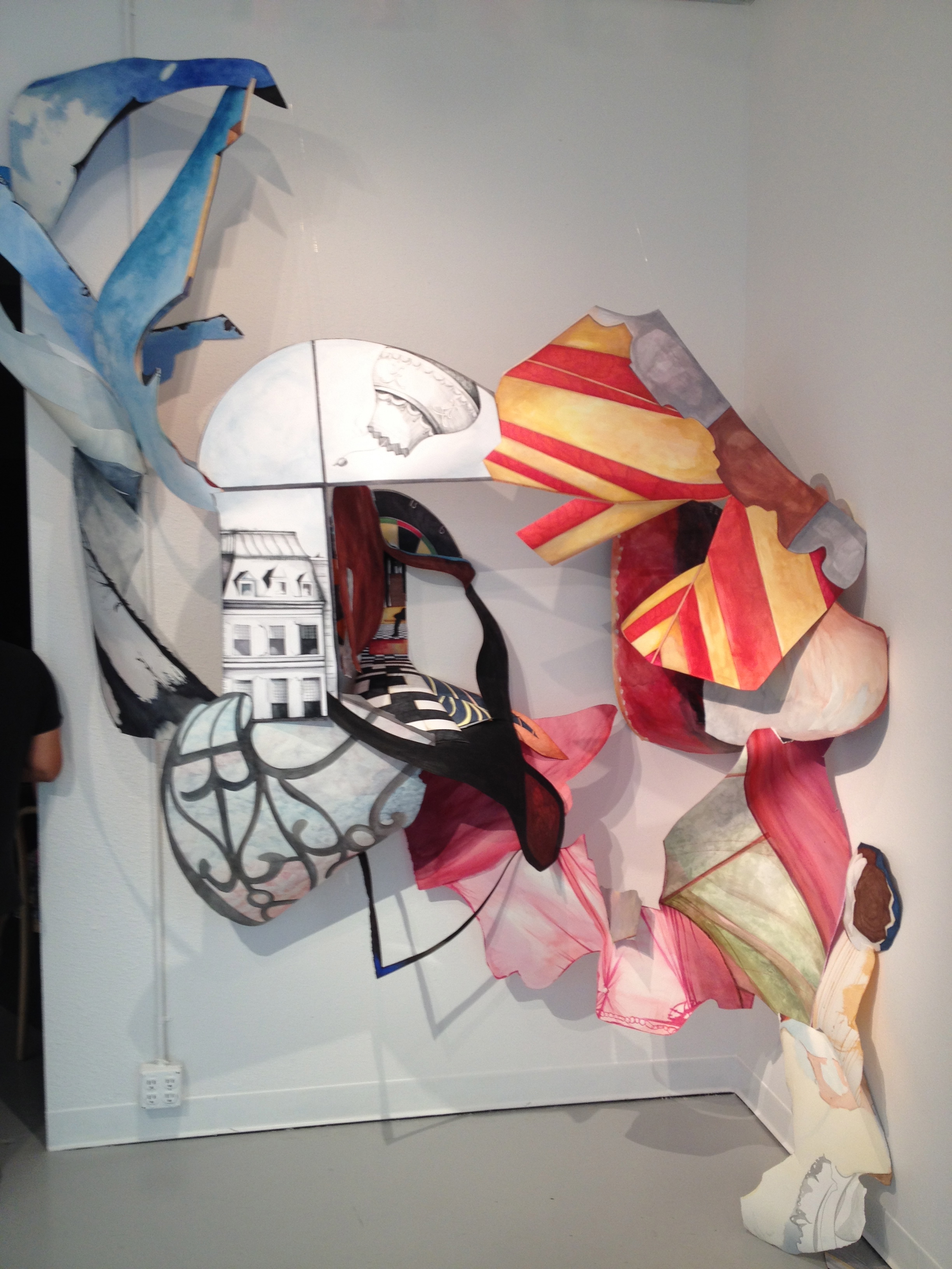 There was, as the above and some of the following images attest, lots of great work. One of the themes percolating this year were works that were, in small or not so small ways, decaying or in some cases, partially erased. The following work was not a particular favorite of mine, but it does indicate one of the present structural themes at the fair. Some of the works literally looked like they were falling apart, and the conservator in my head was taking note of the delicate state of much of the work and especially the fugitive nature of the materials themselves. The ephemeral nature of things and it’s translation into materials, process and the object itself is a story I am seeing from a lot of artists these days. Myself included.